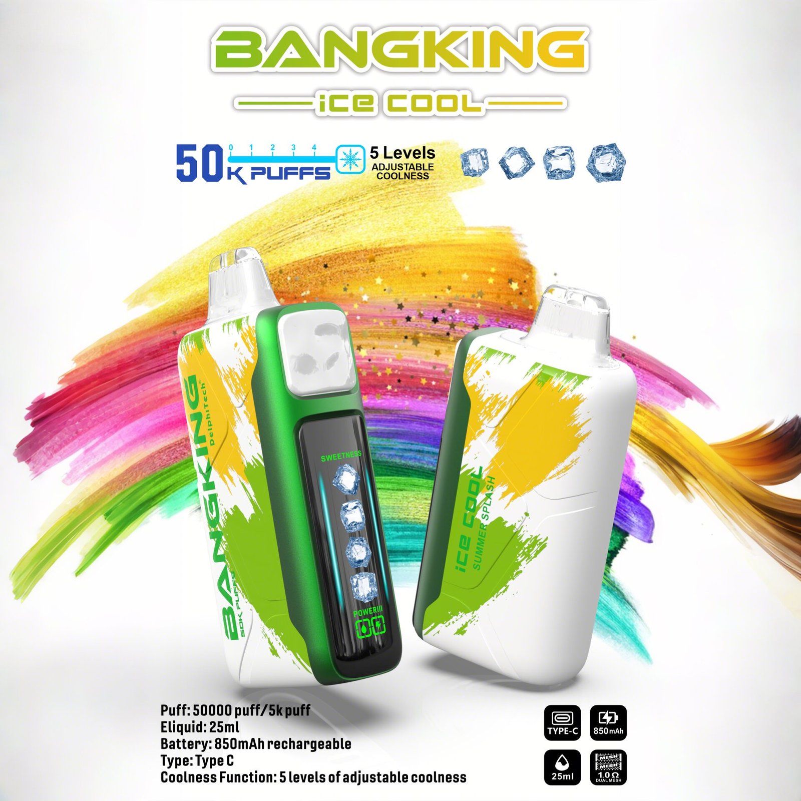 Függetlenül attól, hogy fagyos gyümölcsöket, édes cukorkákat vagy zamatos trópusi ízeket kedvel, a Bang King Ice Cool 50000 Puffs a teljesítményt és az ízek rugalmasságát ötvözi egy stílusos, nagy kapacitású eszközben.